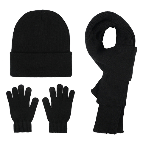 Autunno inverno donna a prova di freddo tre pezzi Set a contrasto colore maglia berretto Jacquard sciarpa guanti Touch Screen