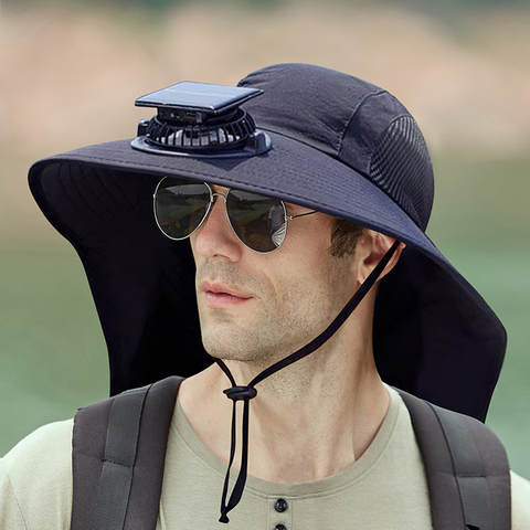 Estate escursionismo all'aperto cappello da pescatore ad asciugatura rapida cappello da uomo ventilatore di ricarica solare con stampa mimetica protezione solare per la pesca